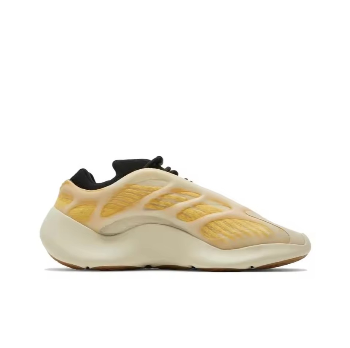 The Adidas Yeezy 700 V3 “Kyanite” blends futuristic design with warm, eye-catching tones. It features an engineered mesh upper wrapped in a semi-translucent RPU cage that enhances durability while delivering a sleek Yeezy aesthetic.